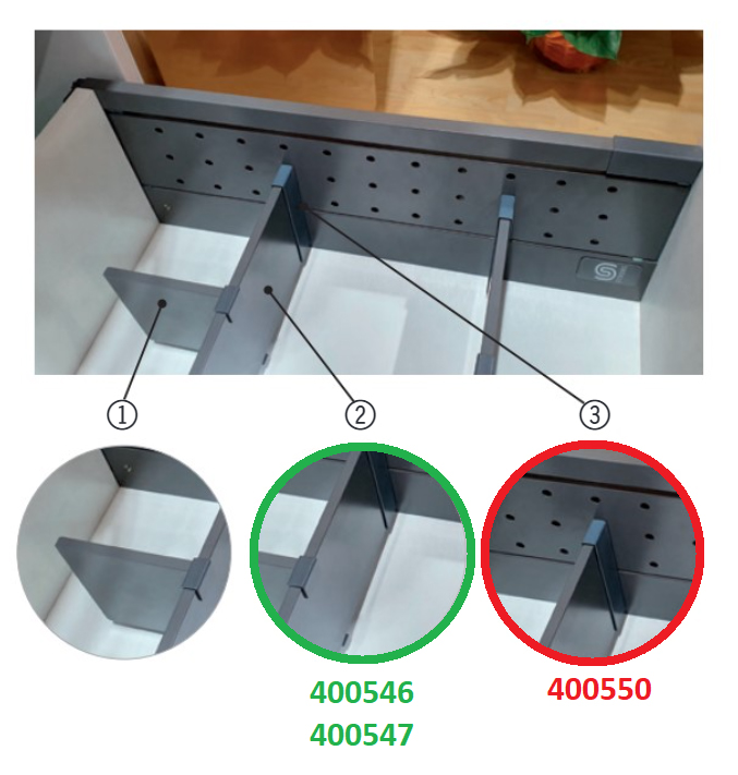 Profil sloužící k příčnému předělení prosoru zásuvky a to v kombinaci s koncovkami, které se zacvaknou do zvýšených bočnic zásuvky. Barva bílá,