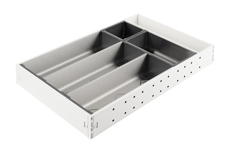 Příborník do StrongMax 16. Kompletní příborník 276x423mm. Sada pro sestavení příborníků pro všechny šíře zásuvek. V sadě jsou 3 misky o délce 264mm, 1 miska o délce 176mm a 1 miska o délce 88mm. Je možno rozšířit o 88, 176, nebo 264mm. bílá. Výška systému je 59mm.
