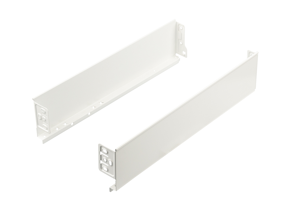Extrémně tenká jednoduchá "single-wall" kovová bočnice tloušťky 1mm pro skryté výsuvy StrongRide Uni na výrobu vysoce funkční boxové zásuvky s jednoduchou montáží za ekonomickou cenu. Integrované držáky zad i příchyt čela. Stejná šířka přířezu dna i zad, lze použít materiál 16mm i 18mm.