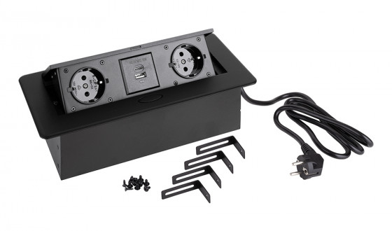 Strong Elektrická zásuvka 2x 230V,2x USB A/C, Schuko typ (standart pro DE, AT, HU, apod.), 1,5m kabel, rozměry 265x118x68mm, černá