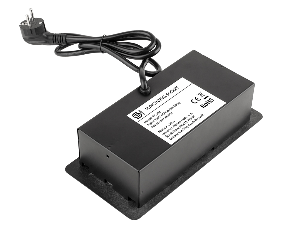Strong Elektrická zásuvka 3x 230V, Schuko typ (standart pro DE, HU, apod.), 1,5m kabel, rozměry 263x130x67mm, stříbrná
