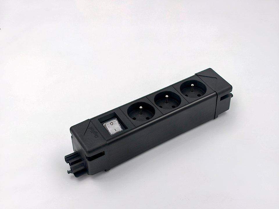 StrongPower elektrická zásuvka UnderDesk, 3x FR, vypínač, černá