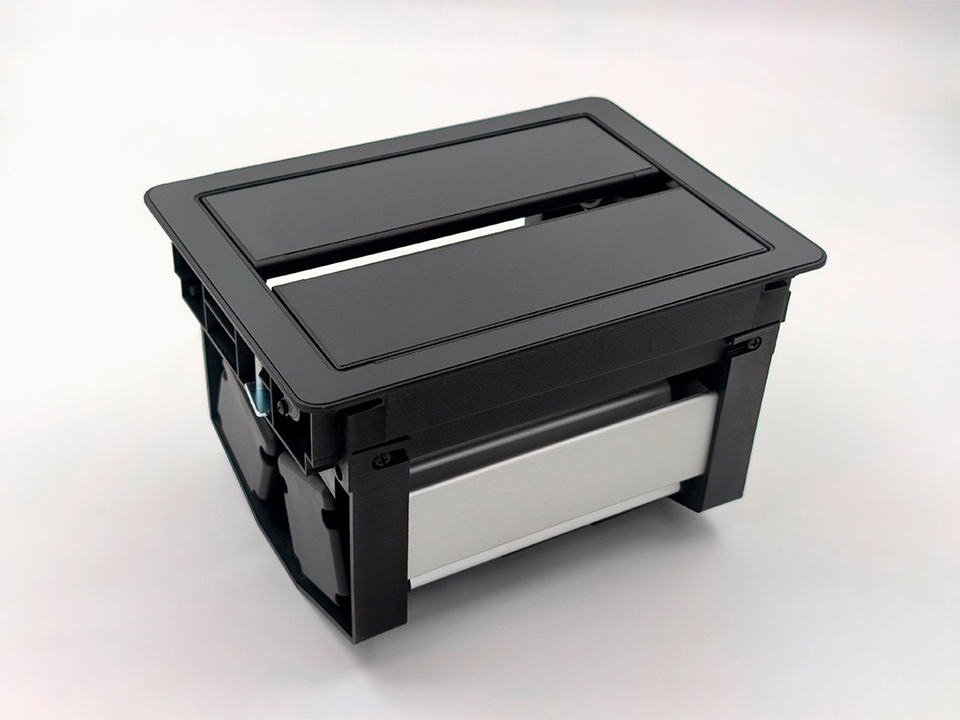 Dvojité otevírací víko s jedním nebo dvěma zásuvkovými moduly uvnitř Po zavření zůstane upropstřed mezera na průchod kabelů