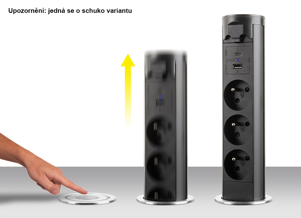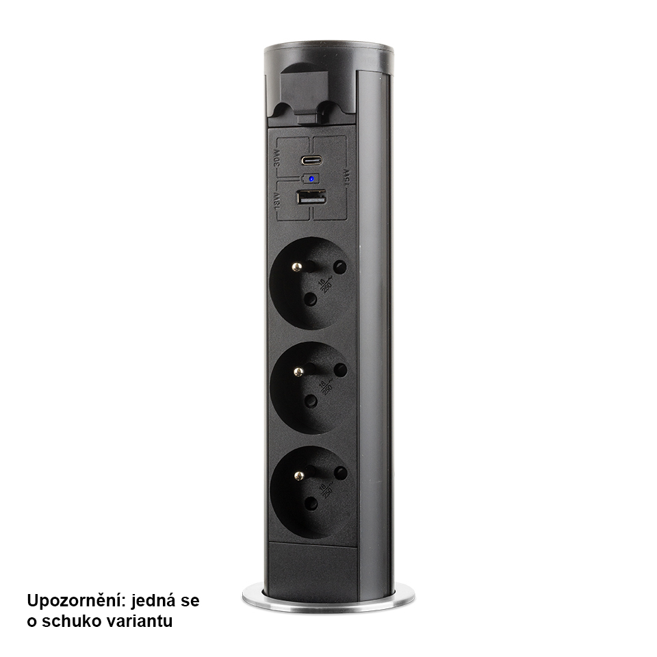 StrongPower elektricky výsuvná zásuvka 3x 230V Schuko, USB A+C, černá