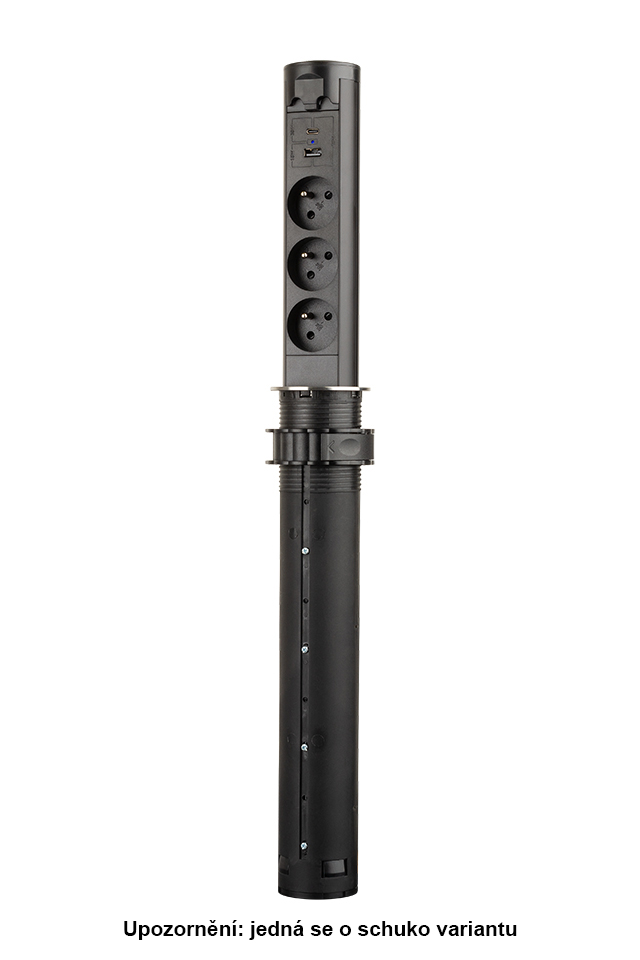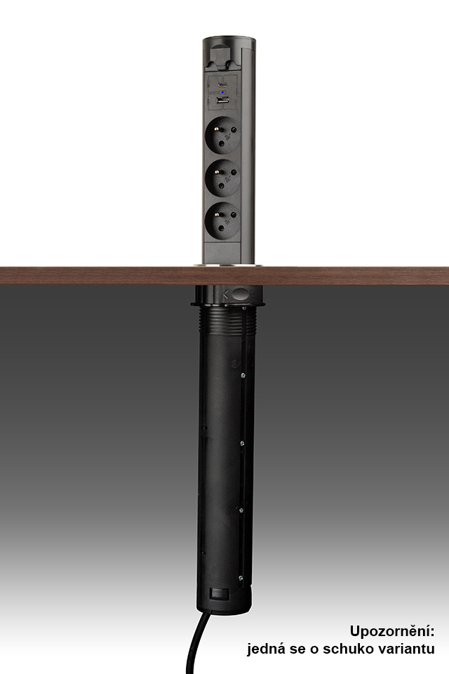 Kování a doplňkový materiál Kancelářské vybavení Kancelářské elektrozásuvky StrongPower elektricky výsuvná zásuvka 3x 230V Schuko, USB A+C, černá