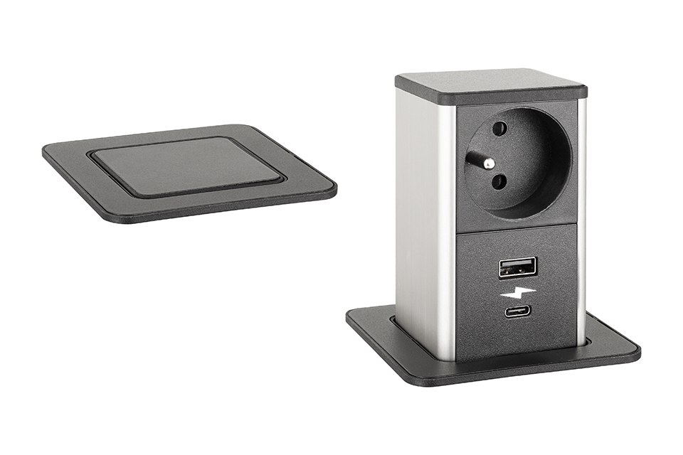 StrongPower PowerUp zásuvka, 1x230V, Francouzská, USB A+C nabíjecí, černá