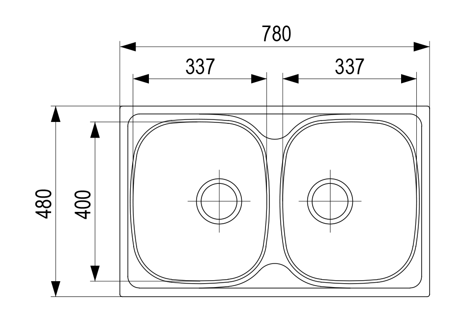 StrongSinks S1 Dřez Welland leštěná nerez 780x480 dvojitý, horní montáž