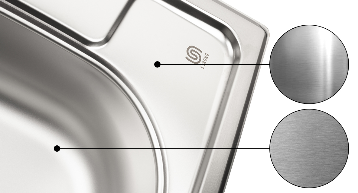 StrongSinks S1 Eko Dřez nerez satén/horní plocha broušená 488x488, horní montáž