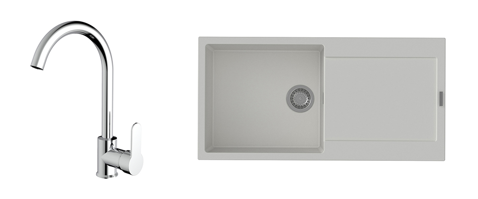 StrongSinks S3 Set dřez Zala 1000 1000x500mm granit bílá + Baterie Seina chrom