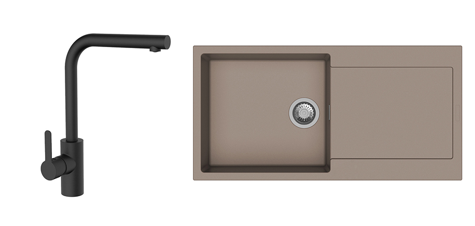 StrongSinks S3 Set dřez Zala 1000 1000x500mm granit hnědá + Baterie Ipoly černá