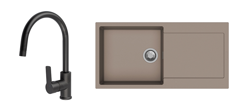 StrongSinks S3 Set dřez Zala 1000 1000x500mm granit hnědá + Baterie Loira černá
