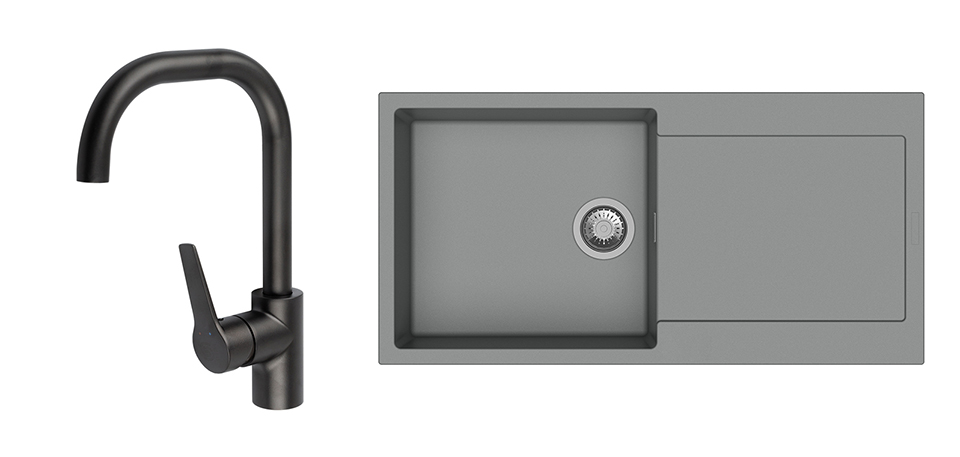 StrongSinks S3 Set dřez Zala 1000 1000x500mm granit šedá + Baterie Garonne černá