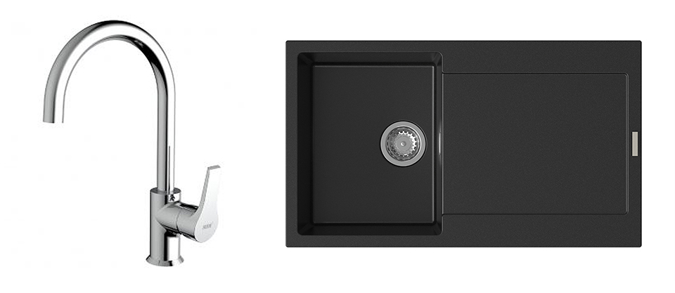 StrongSinks S3 Set dřez Zala 860 860x500mm granit černá + Baterie Rhona chrom