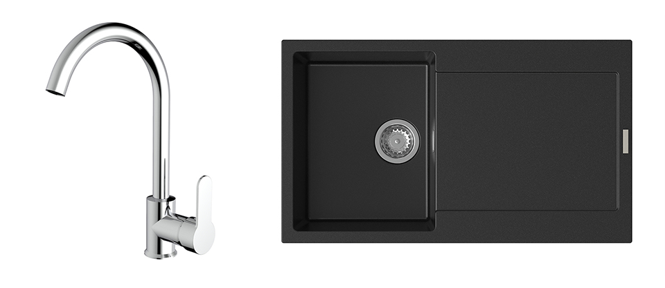 StrongSinks S3 Set dřez Zala 860 860x500mm granit černá + Baterie Seina chrom
