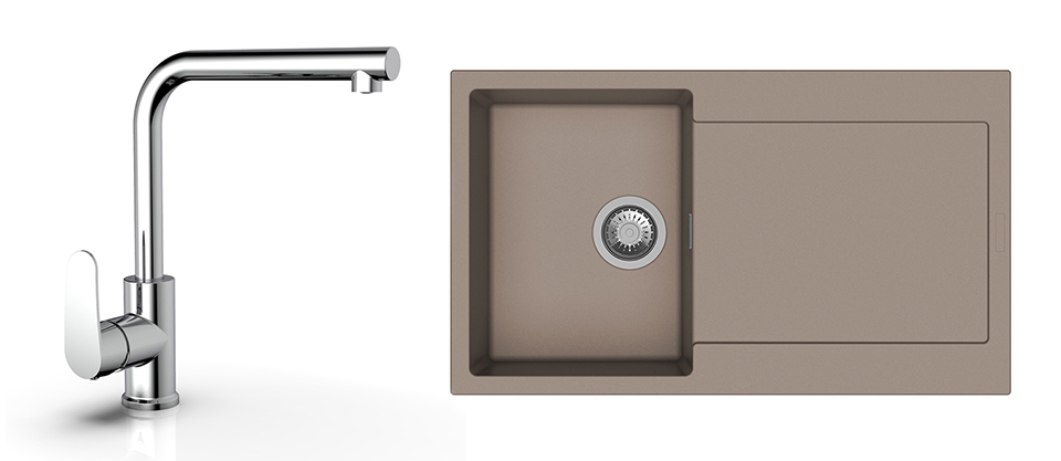 StrongSinks S3 Set dřez Zala 860 860x500mm granit hnědá + Baterie Stréva chrom