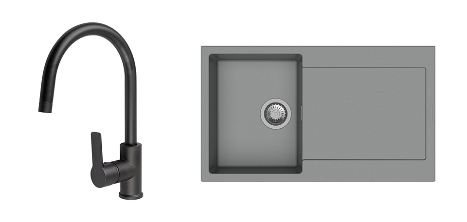 StrongSinks S3 Set dřez Zala 860 860x500mm granit šedá + Baterie Loira černá