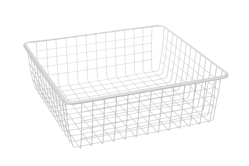 Šatní koš pro korpus 400mm. Nosnost koše 20 kg. Možno dokoupit výsuvy: 351098 - Výsuv plastový FLEX pro 16mm korpus - bílý nebo - 351101 - Výsuv plastový FLEX pro 18mm korpus - bílý