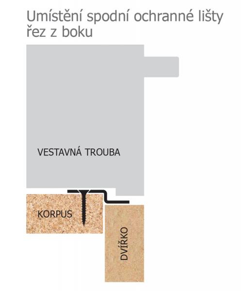 Spodní ochranná lišta - je určena pro skříňky šíře 600 mm. Vruty jsou součástí balení. Slouží k ochranně před působením tepla.