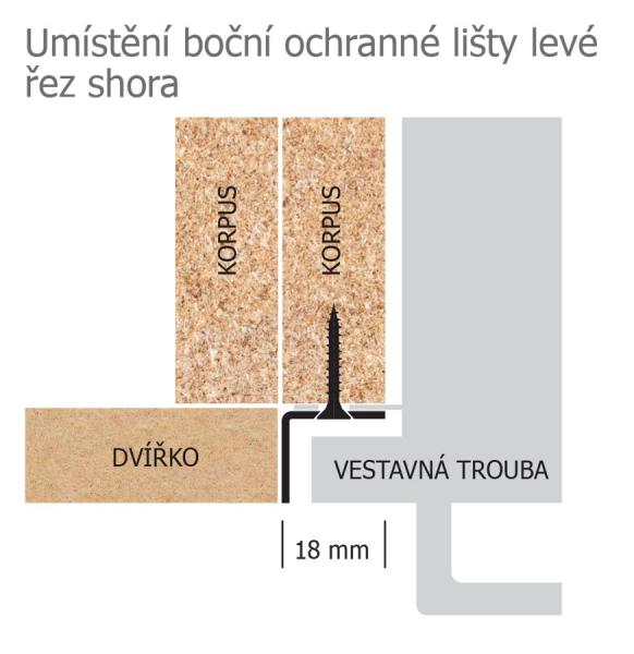 Boční ochranné lišty - Jsou ve tvaru písmene L a jsou dodávány vždy v páru. Mají rozměr 18 x 20 x 580 mm jsou vhodné pro každou vestavnou troubu s korpusy tl. 18 mm. Vruty jsou součástí balení lišt. Lišty slouží k ochranně před působením tepla.