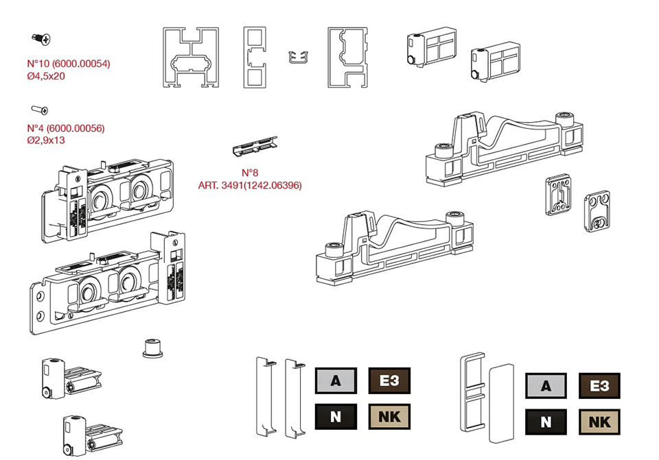 Kompletní sada kování a profilů pro skleněné rámové dveře. Vodící profily nutno dokoupit viz. související sortiment.