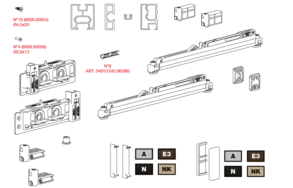 Kompletní sada kování a profilů pro skleněné rámové dveře. Vodící profily nutno dokoupit viz. související sortiment.