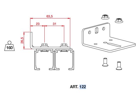 Příchyt na stěnu pro dvě horní vedení vedle sebe. Určeno pro interérové kování Terno. Max. nosnost 80 kg - jedna lišta.