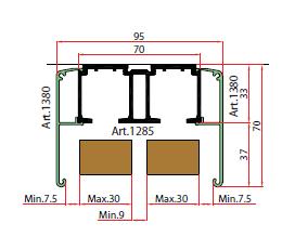 Horní dvojitý nosný profil pro uchycení na strop ke kování pro skleněné interiérové dveře DT343-DT353.Délka 2 metry.
