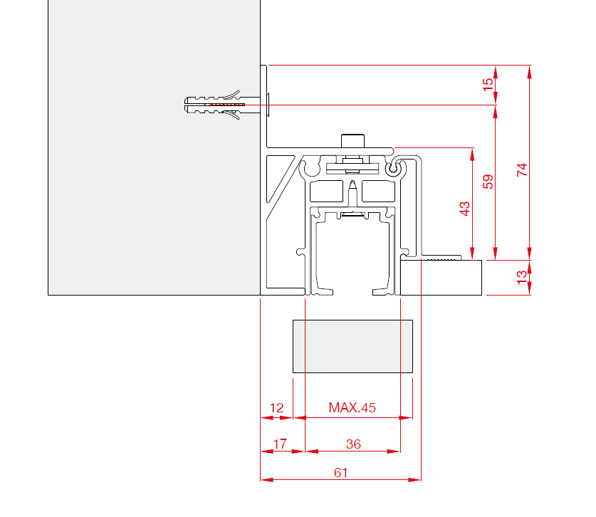 Pro přichycení horního vedení viz. související sortiment. Vhodné pro použití v sádrokartónovém podhledu. Délka 6m. Materiál - eloxovaný hliník.