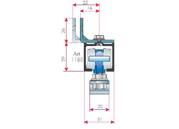 K uchycení profilů DT303, DT304 a DT174 (typ vedení Art. 1280), montáž co cca 46 cm.