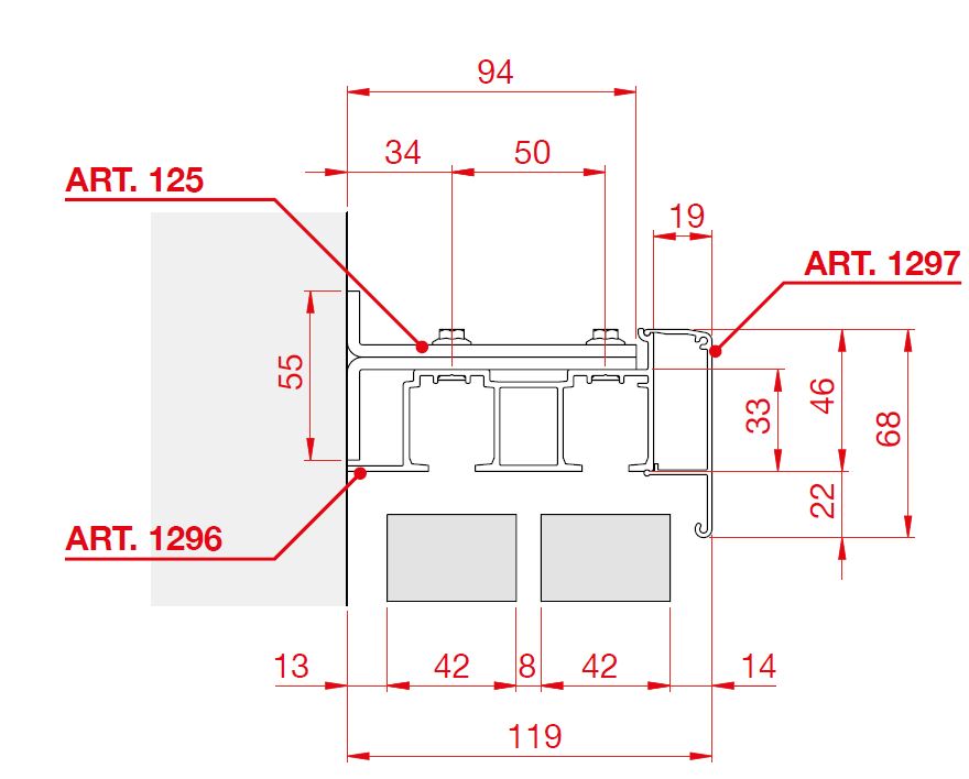 TERNO interiérové posuvné dveře 40-80kg, art. S.125 držák horního vedení