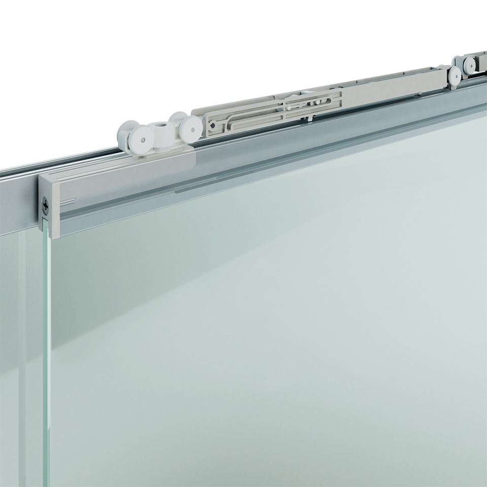 Ideální řešení, které poskytuje nejvyšší estetické výsledky. Living Top Vetro je nastavitelný systém s horním posuvem, určený pro skleněné dveře o hmotnosti do 15 kg bez tlumení. Systém představuje nejlepší řešení pro čistou a estetickou realizaci bez spodního vedení. Snadná montáž. Ideální řešení pro obývací pokoje, kanceláře, prodejny apod. Pro tloušťku skla 6mm, max. plocha 1m2. Minimální šířka křídla 300mm.