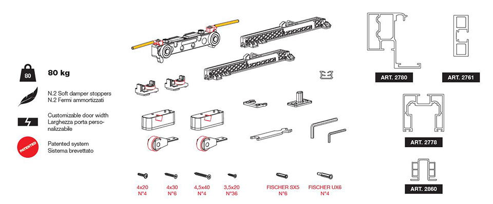 Kompletní sada kování a profilů pro skleněné rámové dveře, umožňující zhotovit posuvné dveře bez viditelné kolejnice (při otevřeném i zavřeném stavu!).