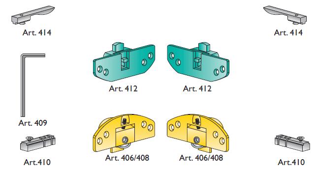 Sada kování s ložiskem pro vložené posuvné dveře o max. váze 30kg. Sada obsahuje horní kluzáky, spodní vozíky, dorazy a inbusový klíč. Barva černá.