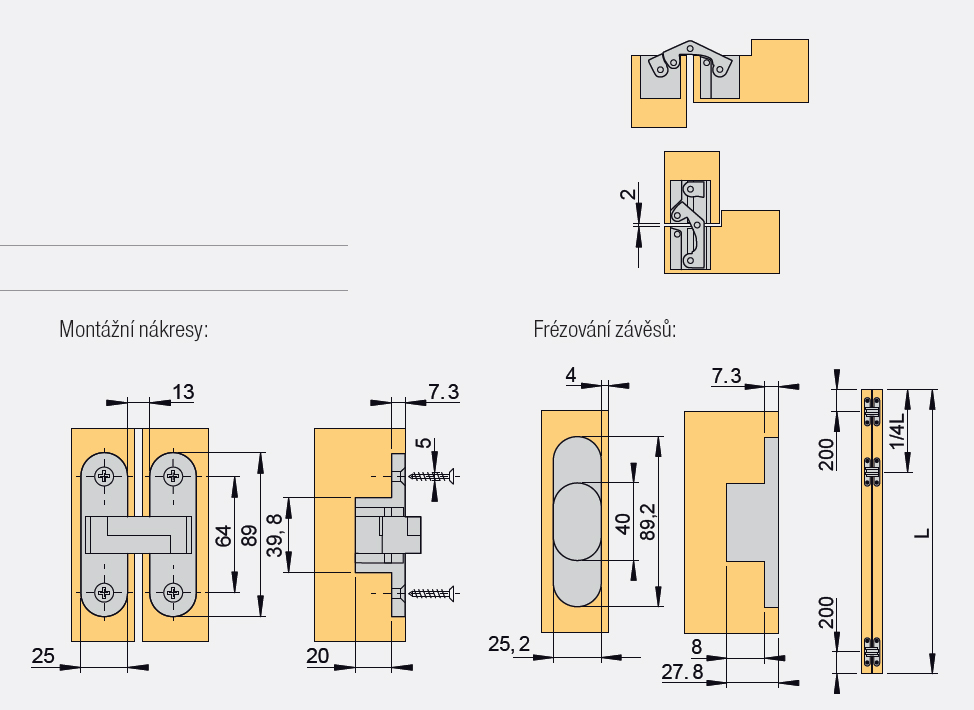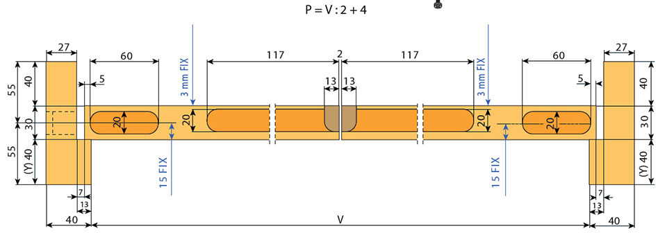 Kování pro lehké skládací interiérové dveře (do 40 kg jedno křídlo) s bezfalcovými panty.