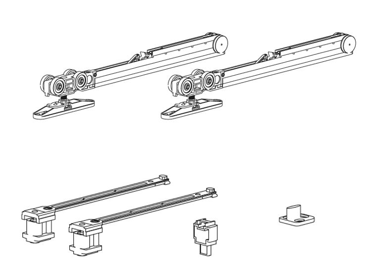 Sada kování pro jedno křídlo s tlumením při dovírání. Kolečka s kuličkovým ložiskem.