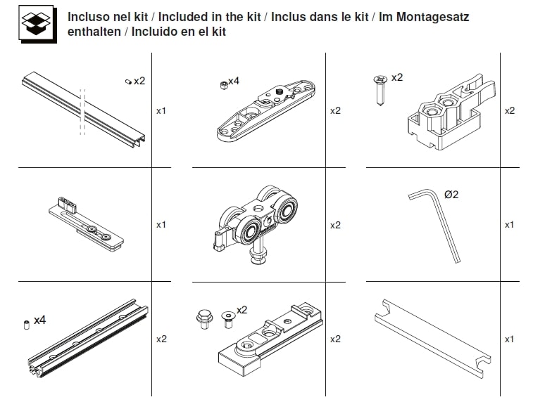 TERNO T-Belt Universal sada kování pro synchronní dveře 80kg černá