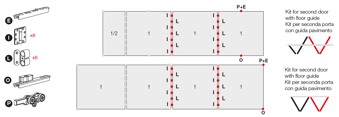 Kování a doplňkový materiál Dveřní kování Interiérové Skládací dveře TERNO Versatile sada,posuv.dvojkřídlo,(30)40kg,závěsy+magnety,3000mm,spod.,černá