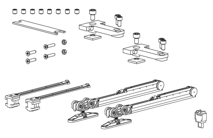 Minimální šířka křídla 840mm. Nutno objednat příchyty, horní vedení atd. viz. související sortiment.