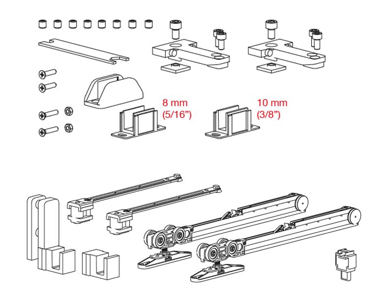 TERNO Vetro 40 Drag sada kování pro první skleněné dveře 80kg s tlumičem