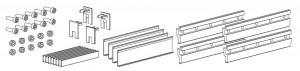 Sada je součástí kompletů kování Vetro 40 pro posuvné skleněné interiérové dveře. Maximální hmotnost křídla je 80 kg, minimální šířka křídla je 740 mm. Součástí sady jsou dva kapalinové tlumiče.