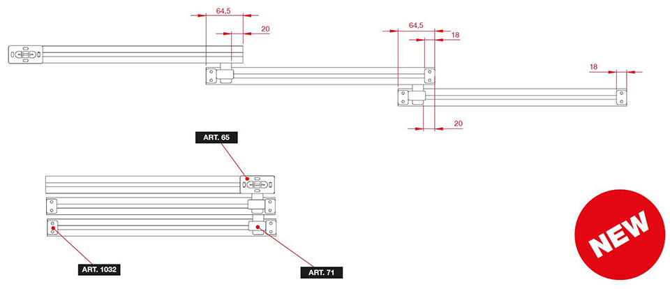 Vodítko teleskopu pro postupné otevírání dveří. Již součástí kompletů viz. související sortiment.