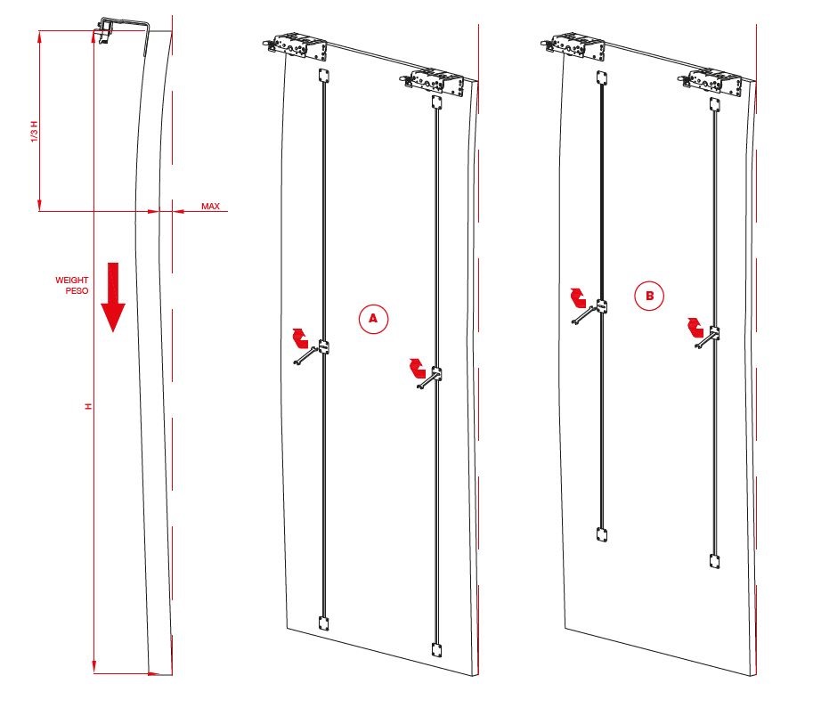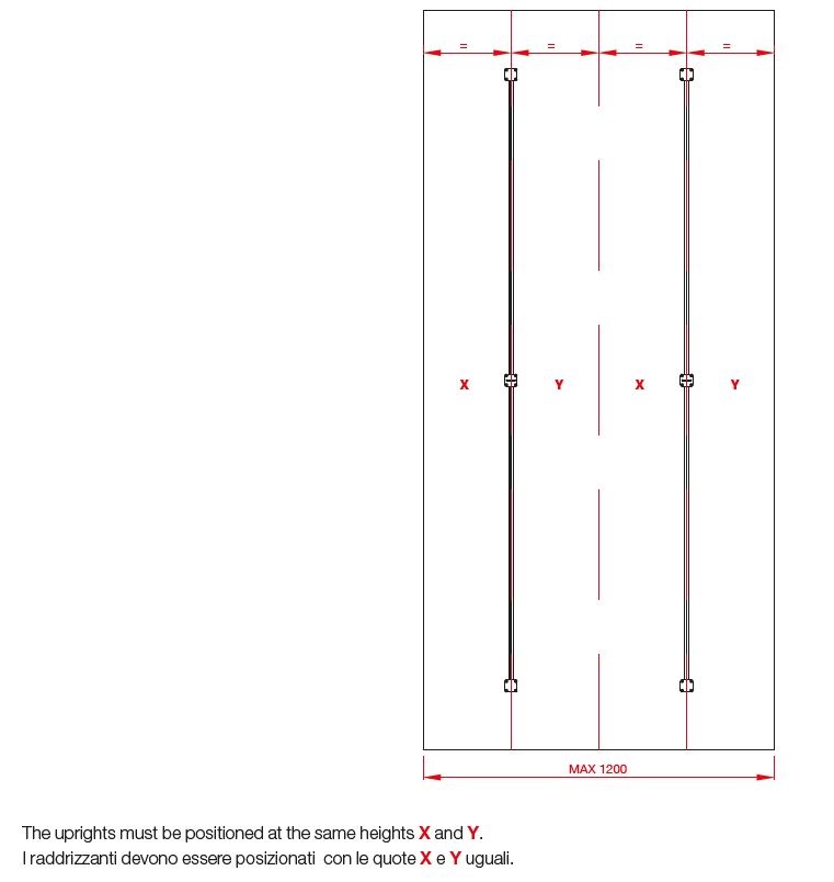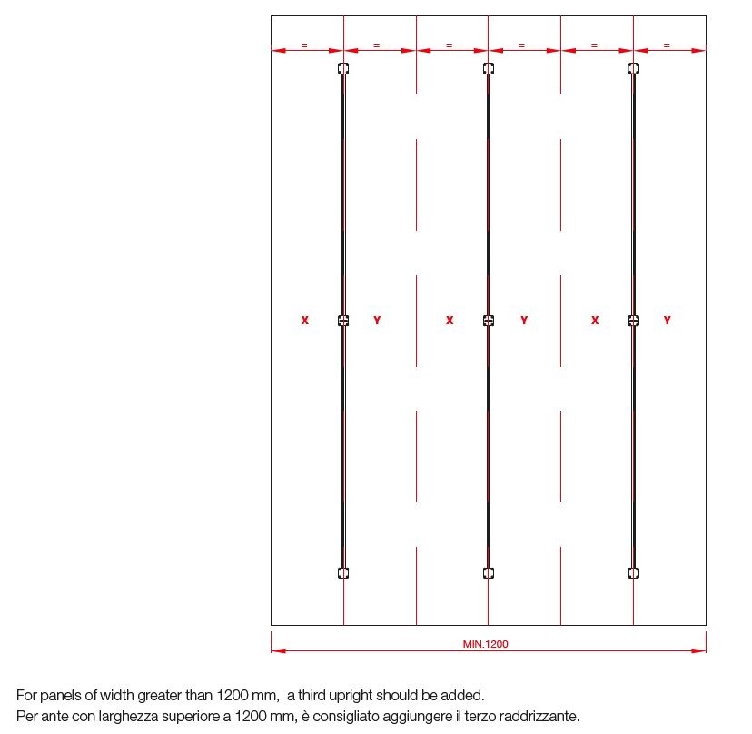 Výztuha posuvných dveří, frézování 1848 - 2248mm (vrtání 35mm, hl.10,5mm) , drážka hl.9mm, šířka 11,5mm. vhodné pro dveře výšky 2050 - 2700mm. Lze krátit viz. mont. nákres.