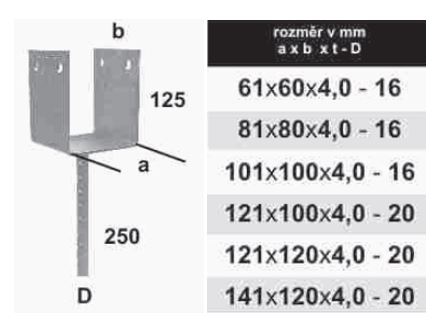 TK-kotevní patka U2 široká 101x100x4-16x250mm
