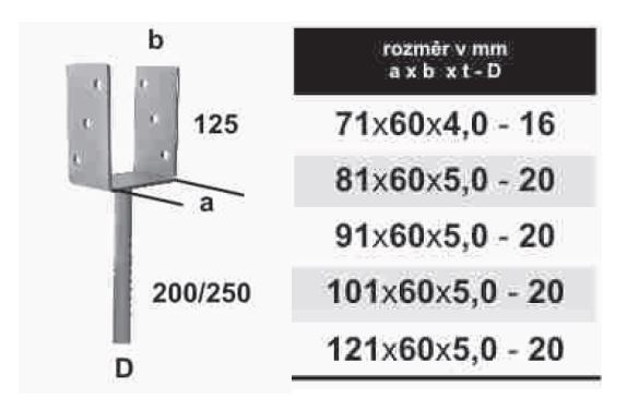 Kování a doplňkový materiál Spojovací kování Tesařské kování TK-kotevní patka U2 úzká 121x60x5,0-20x250mm