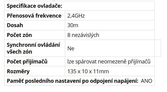 | Určení dálkového ovladače | Bílý LED pásek |