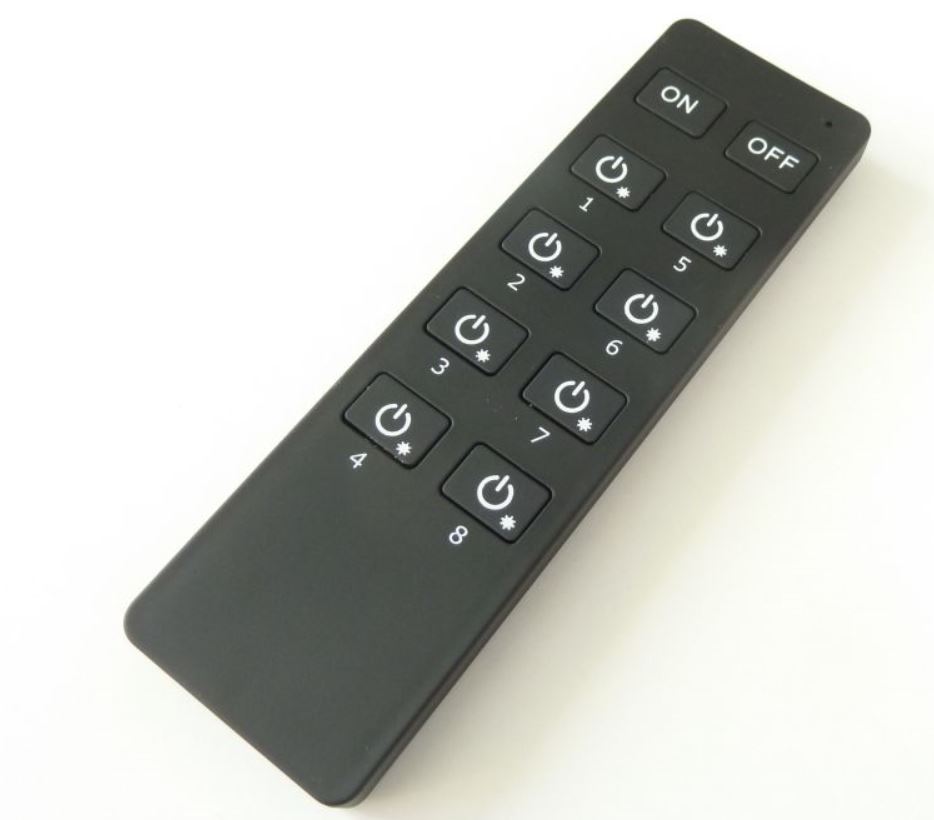 Dálkový ovladač dimLED OV 8KL je bezdrátový radiofrekvenční ovládací systém, jednoho ovladače a několik přijímačů. S jedním ovladačem lze ovládat nezávisle 8 zón, které se můhou skládat z několika přijímačů. Tyto přijímače se po sehrání na jednotlvé předvolbě na ovladači ovládají jako jedna sekce. Přijímač může být ukrytý (za zdí, sádrokartónem či ve skříni), není nutná přímá viditelnost přijímače pro ovladač. Vlastnosti a výhody systému dimLED: Stmívání je stabilní a spolehlivé, dosah ovladače ? 20M. Stmívání v rozmezí 0-100%, 256 úrovní stmívání, stmívání měkké, bez blikání. Při zapnutí dojde k pozvolnému rozsvícení, při vypnutí dojde k pozvolnému setmění.