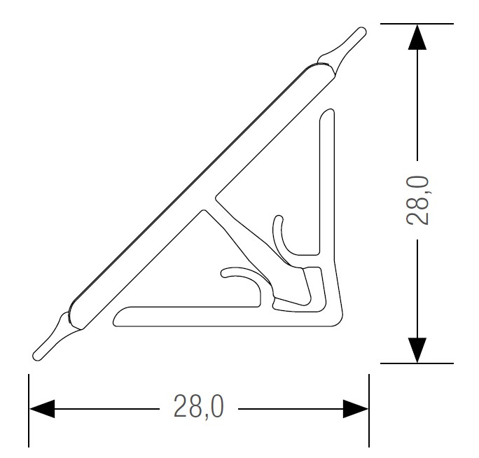 Těsnící lišta v dekoru ke pracovní desce Kronospan ve formátu 4 200 mm x 28 mm x 28 mm.