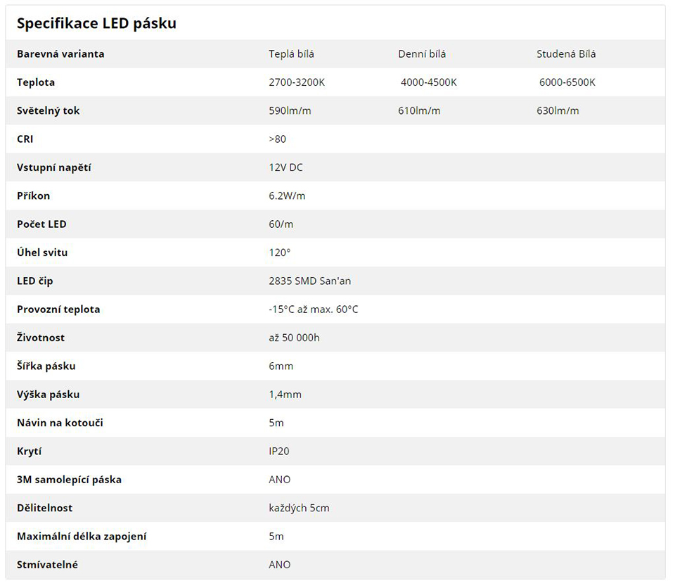 | Světelný výkon (lm/m) | 610 |