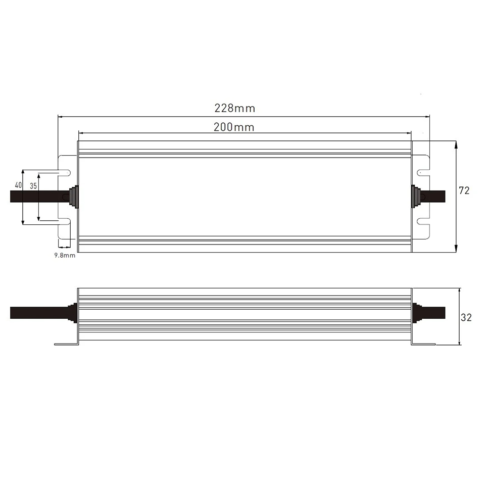 Rozměry: 228x72x32mm. !!! Upozornění !!! max. trvalé doporučené zatížení je s min. 20% rezervou pro běžné užívání, pro instalaci do komerčních prostor s dobou používání 8 a více hodin denně nepřetržitě je doporučené trvalé zatížení vzhledem k účinnosti spínaných zdrojů s min. 30% rezervou , aby byla zachována nejdelší životnost zdroje.