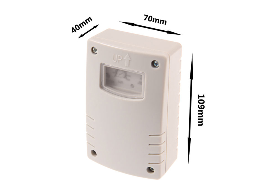Soumrakový spínač SS-T1 s fotočlánkem na 230V zapne nebo vypne automaticky osvětlení podle úrovně intenzity světla. Vypnutí se může nastavit také časovačem. V případě vypnutí časovače se spínač spíná pouze dle nastavení úrovně intenzity světla LUX nad úroveň nastavené citlivosti. Spínač se používá pro spínání osvětlení za soumraku a v noci (pouliční a zahradní osvětlení, osvětlení reklam, výloh …)